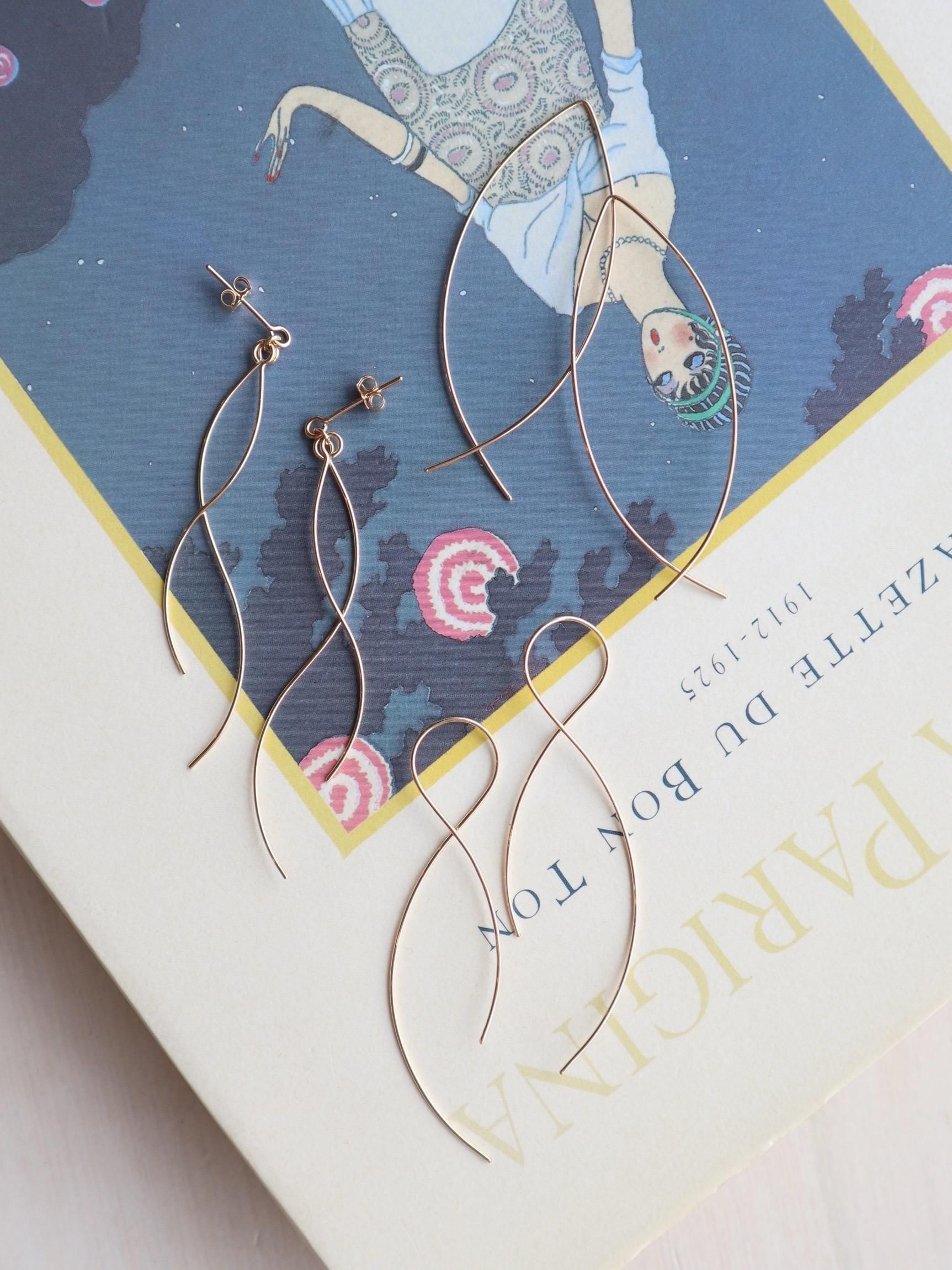 ラウンドワイヤーの曲線が美しい、シンプルながら動きのあるオーバーラップピアス