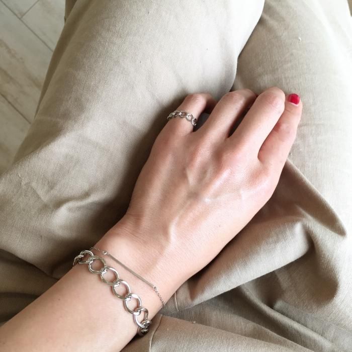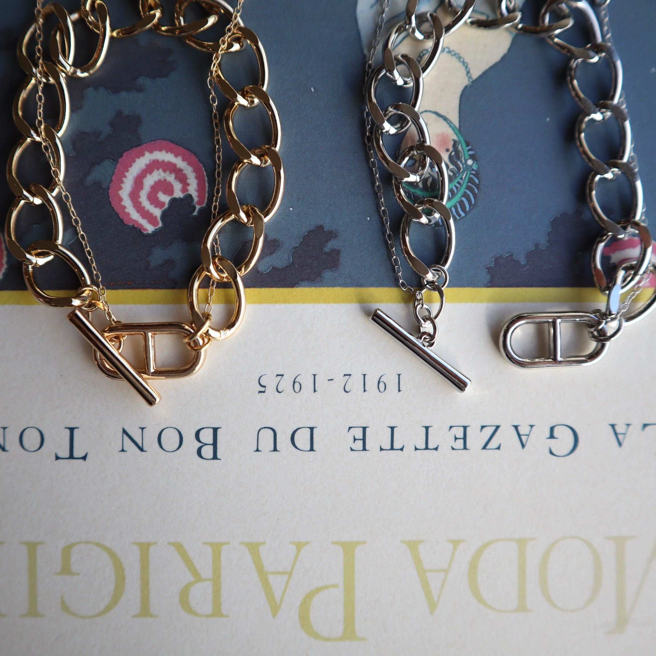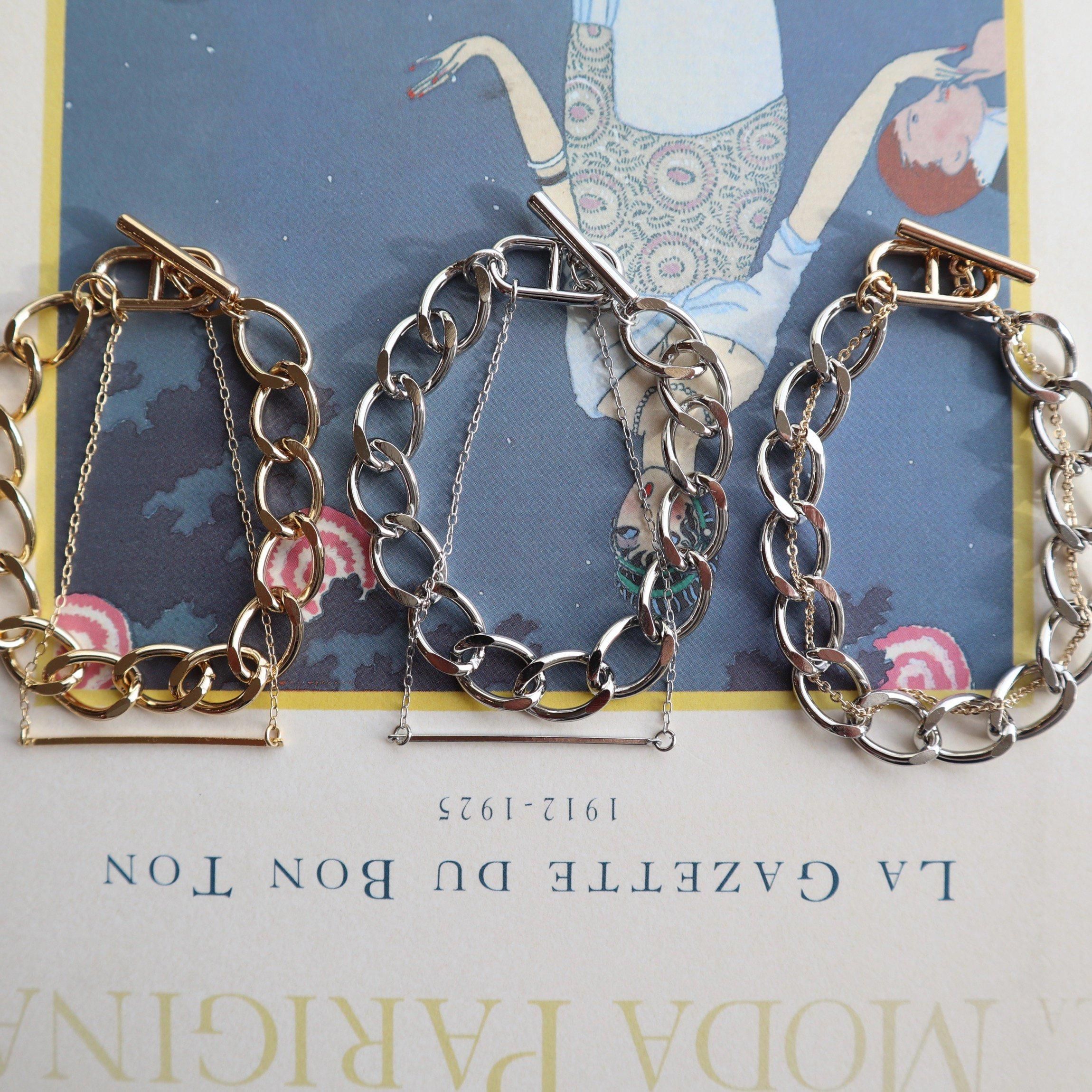 存在感のあるチェーンと細チェーン+スティックの2連ブレス