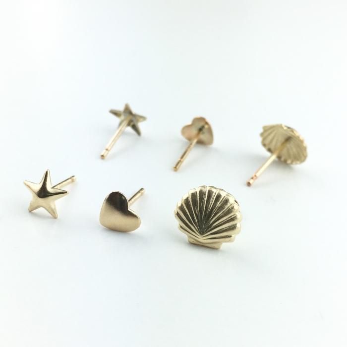 SIZE:モチーフ シェル約8×7mm/バー約10mm/スマイル約7mm/ボルト約9×3mm/クロス約9×6mm/プチハート約3×3mm/プチスター約3×3mm
