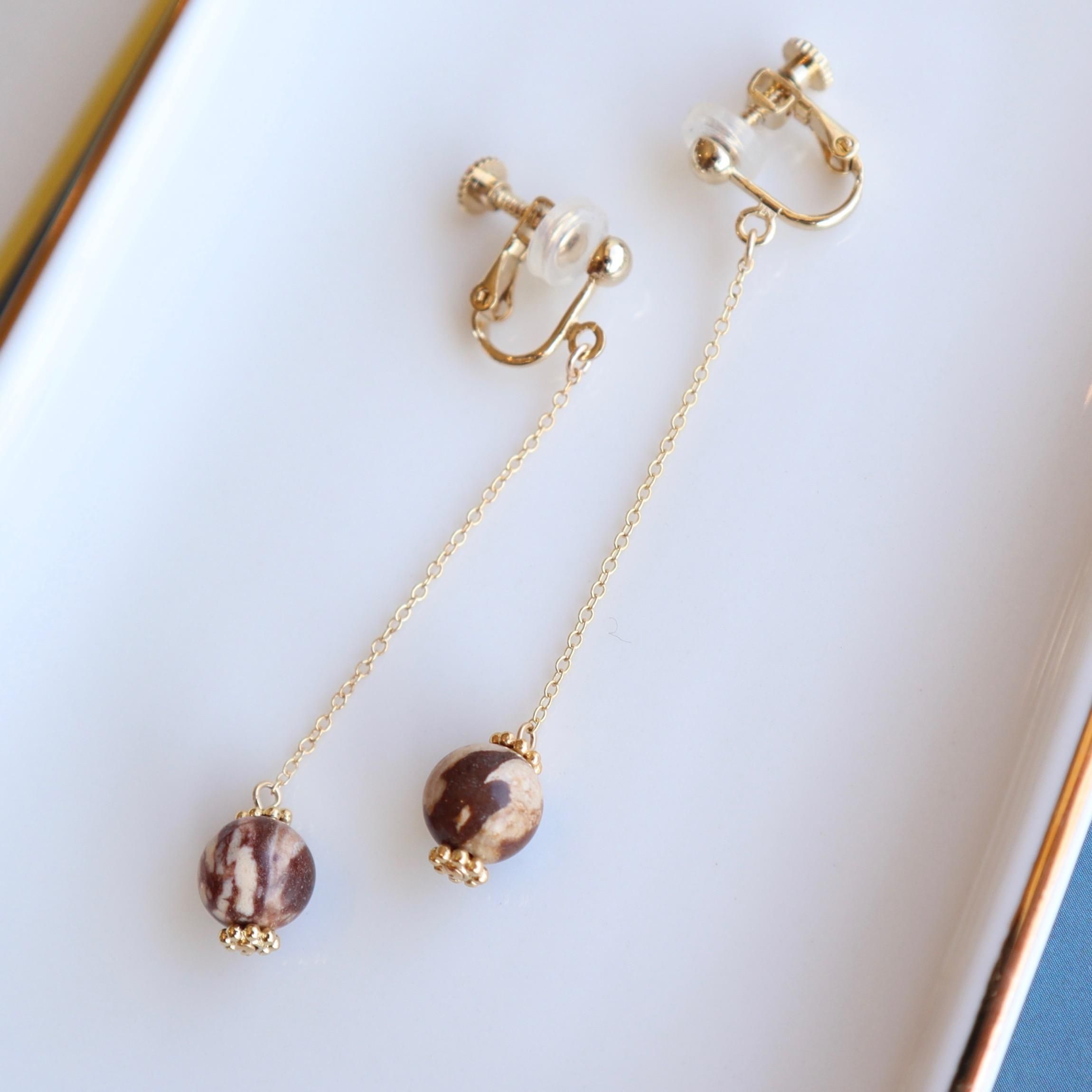 素材:14KGF、合金にGP(イヤリング金具・ビーズ)、カプチーノジャスパー