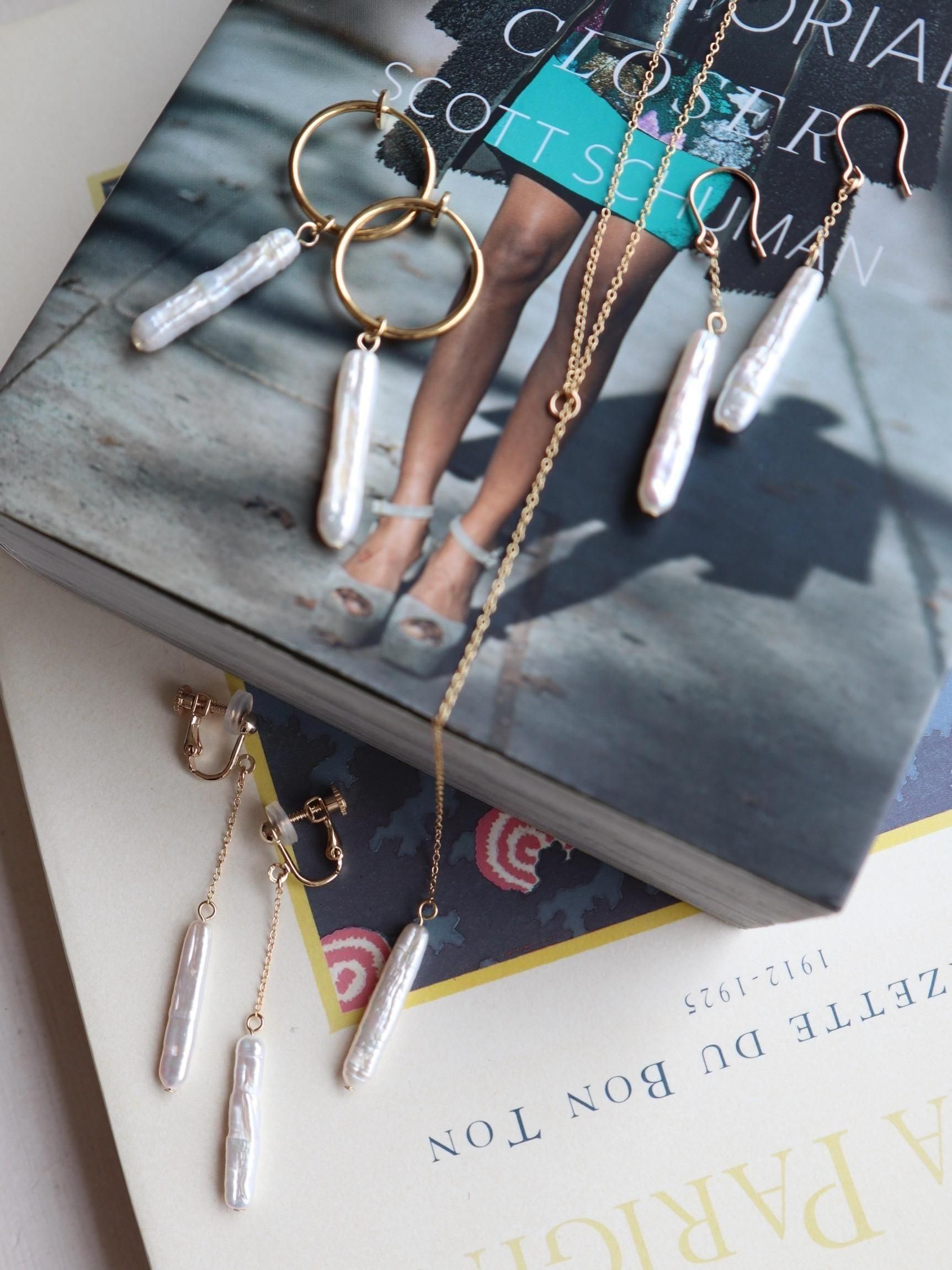 SIZE:全長 ピアス約5cm、イヤリング約6cm、ケシパール約25〜28×5×4mm