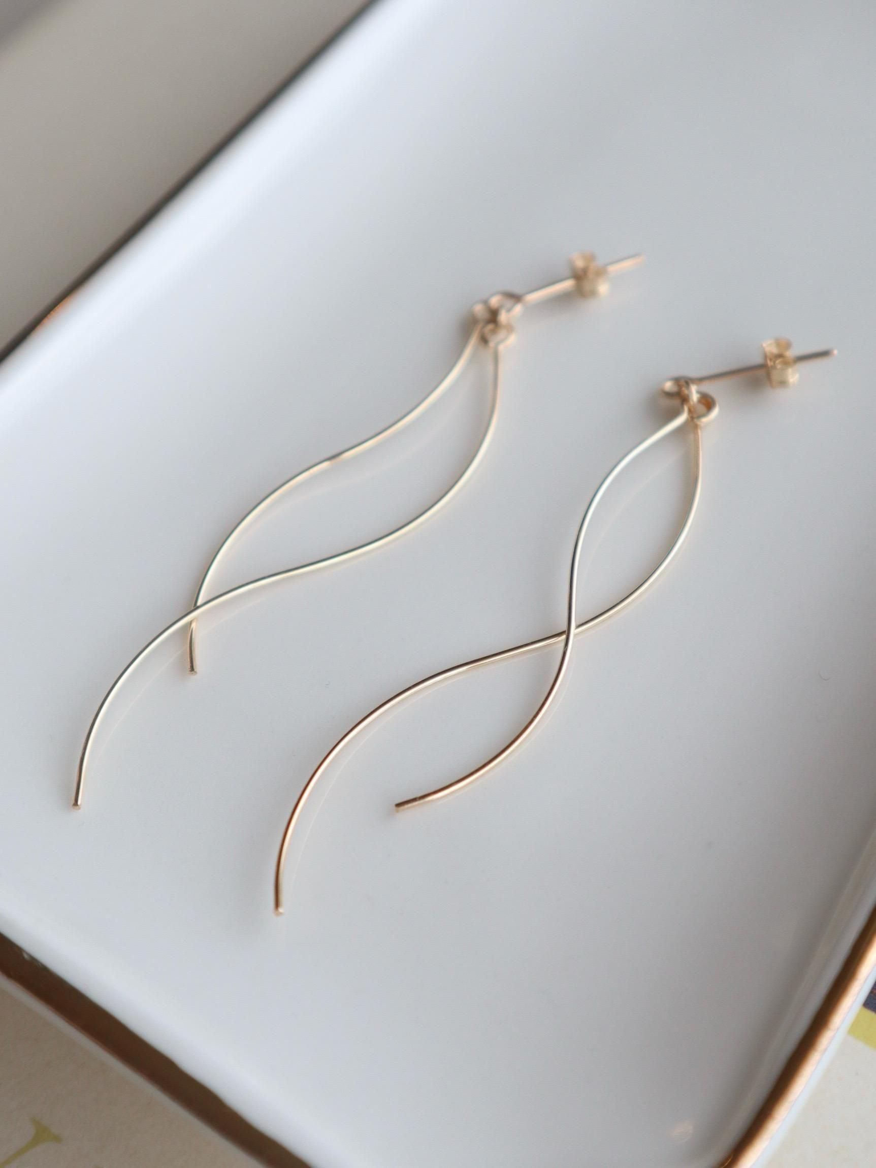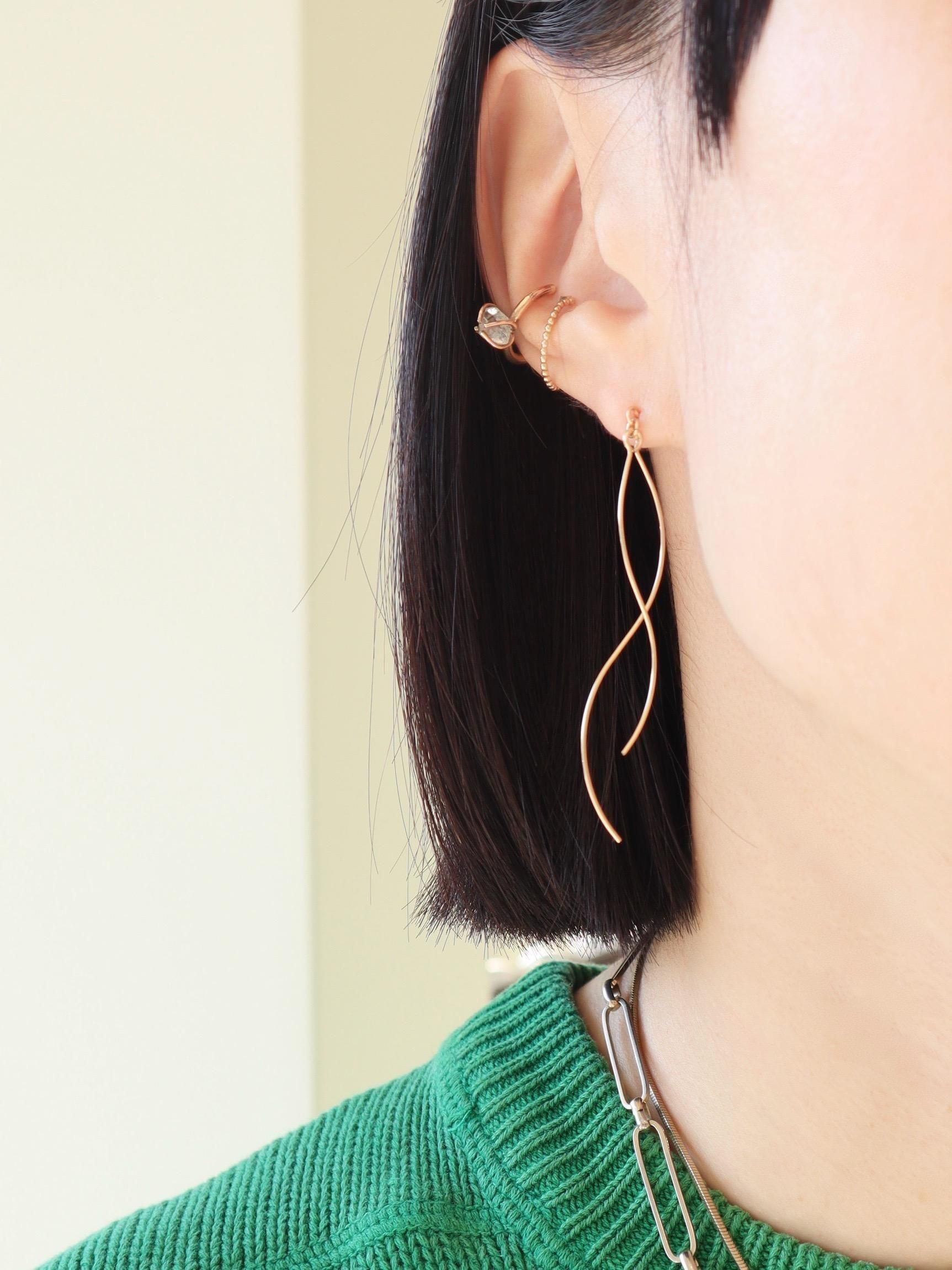 ゆるやかな曲線がとても美しい14KGFワイヤーのウェーブワイヤーピアス&イヤリング
