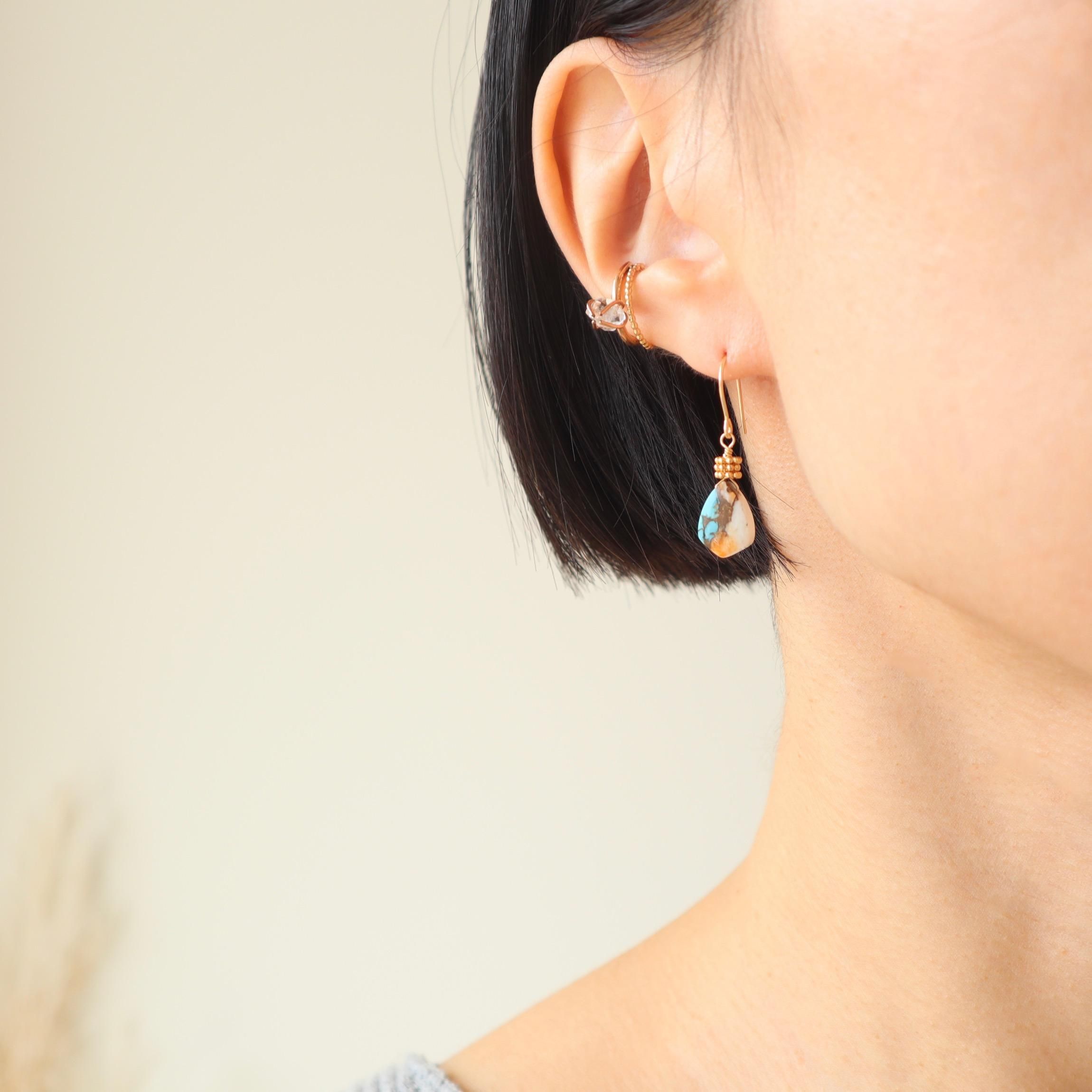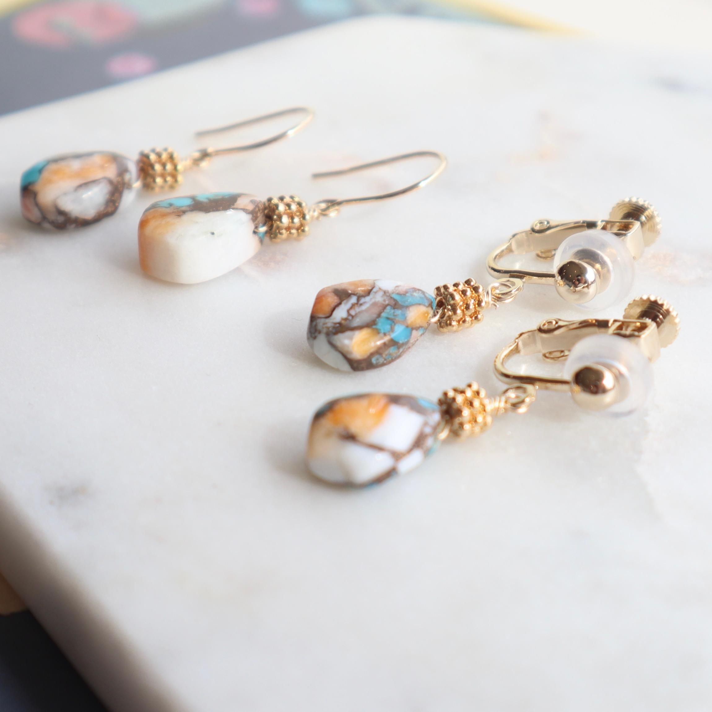 素材:14KGF (ピアス金具)、合金にGP(イヤリング金具、ビーズ)、オイスターカッパーターコイズ