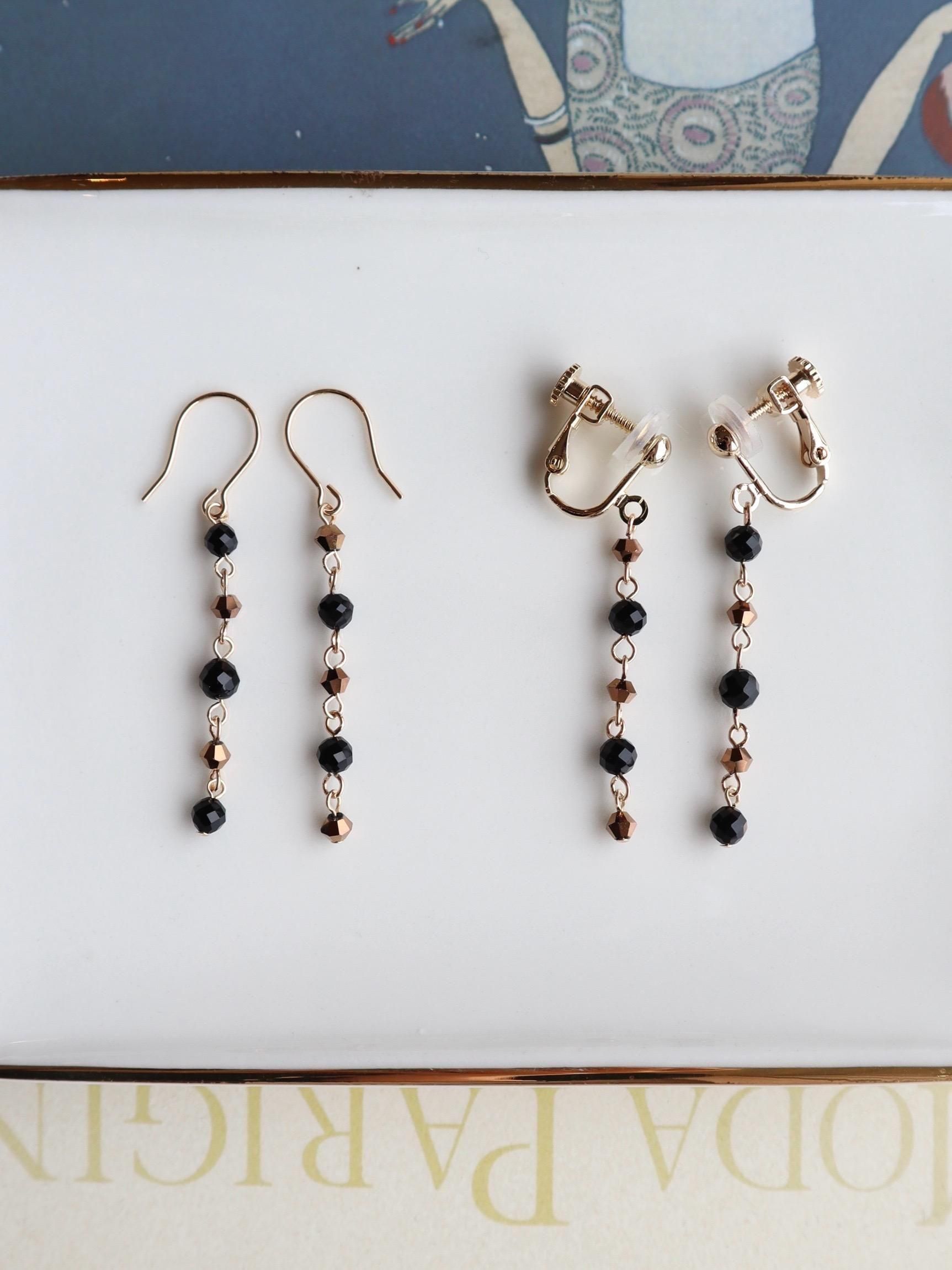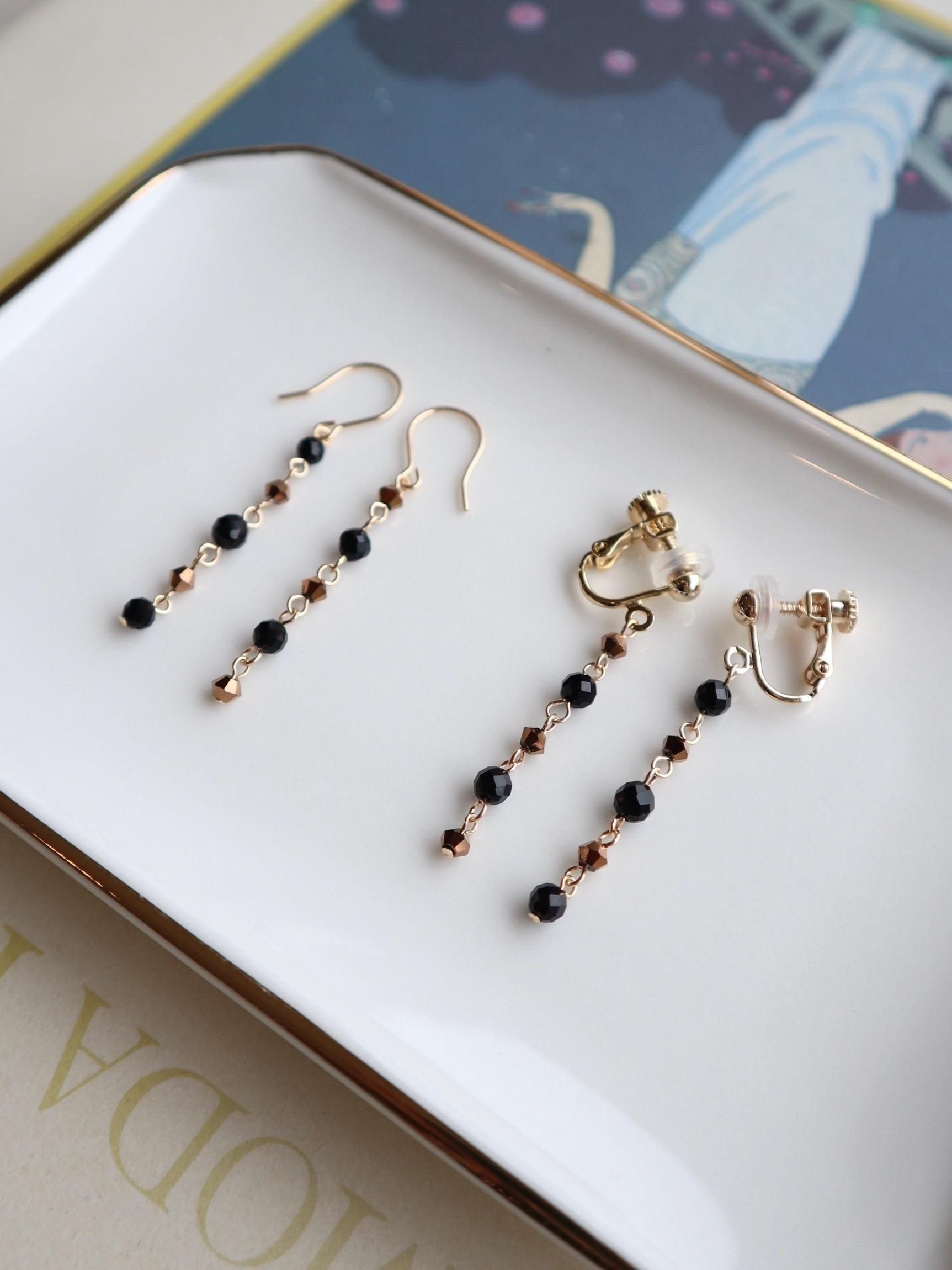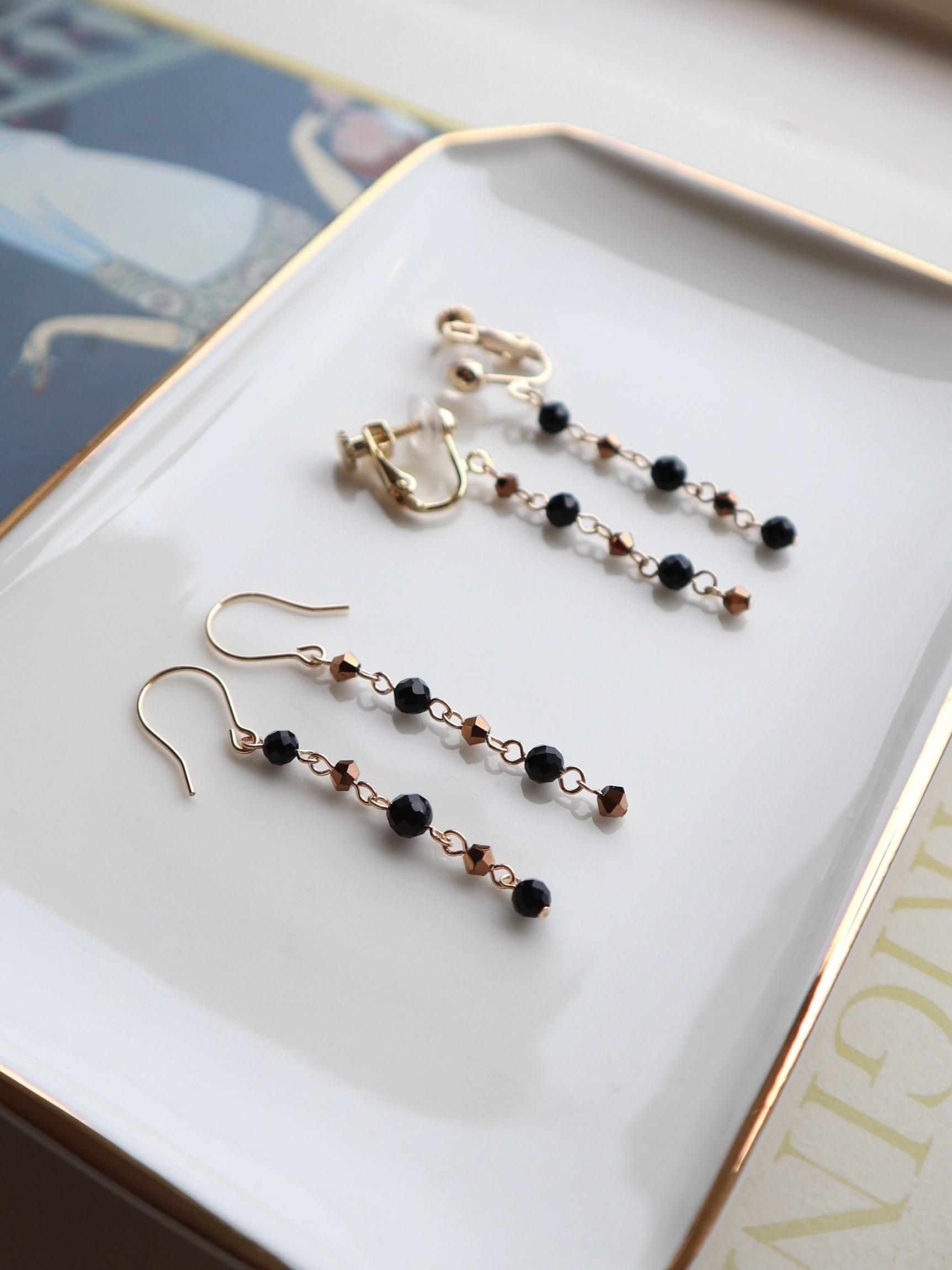 素材:14KGF、オニキス、真鍮にGP(イヤリング金具部)